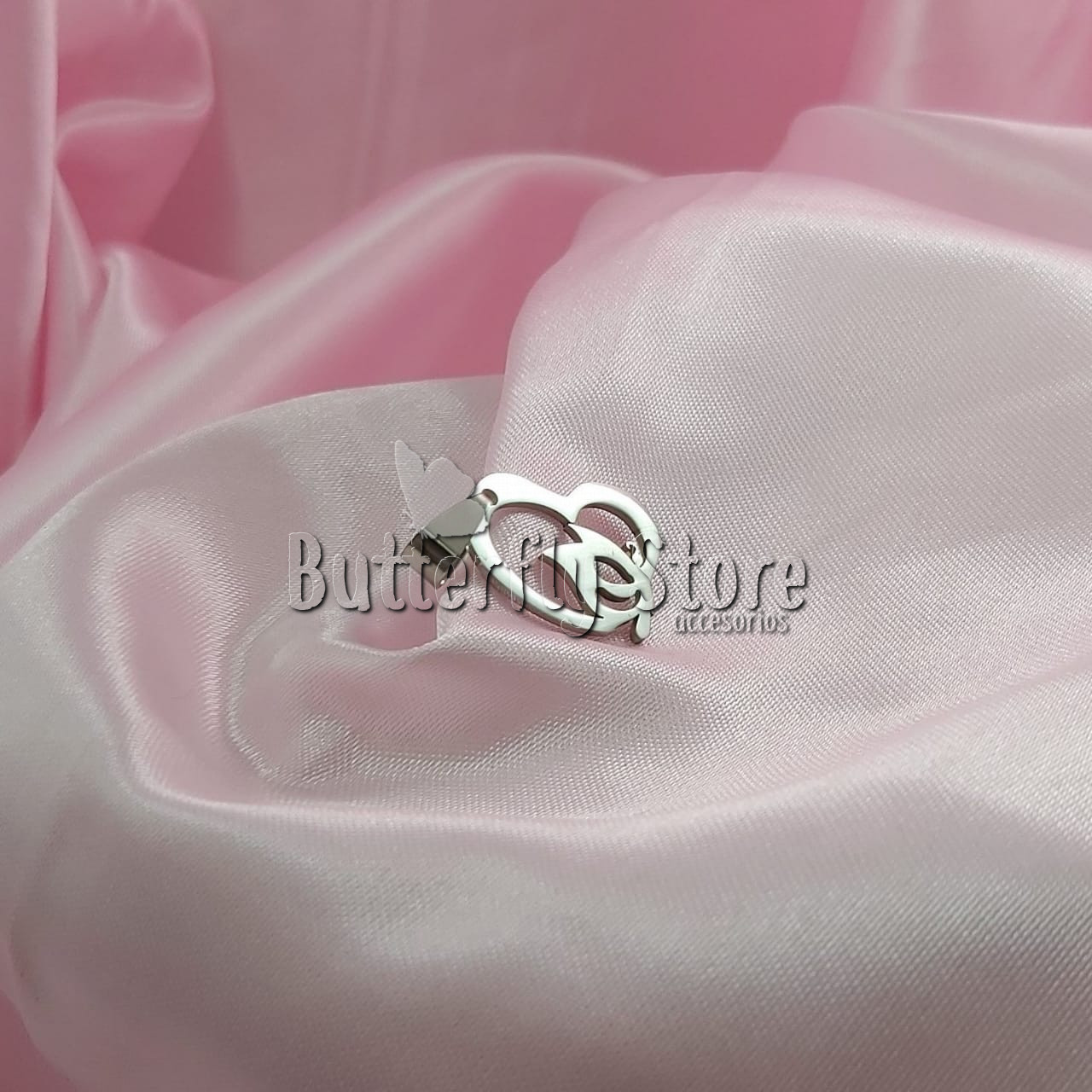 Dije de acero quirúrgico mariposa en corazón.